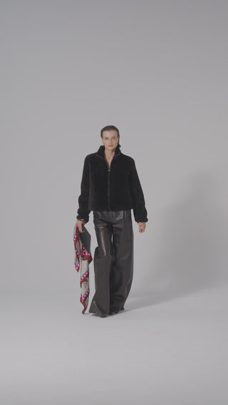 Leopar Desenli Çift Taraflı Shearling Kürk Ceket
