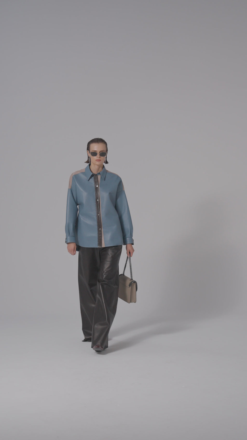 Modern çizgilerle yorumlanan zamansız bir deri parça. Perfore delikli deri dokusu ,can kontrast renk bloklarıyla güçlü bir görünüm sunar. Ön kısmındaki örgü formunda dikiş detayı, kontrast renkleri ile tasarıma sanatsal bir karakter kazandırır. Rahat kesimiyle gündüzden geceye modern şıklığı tamamlar.