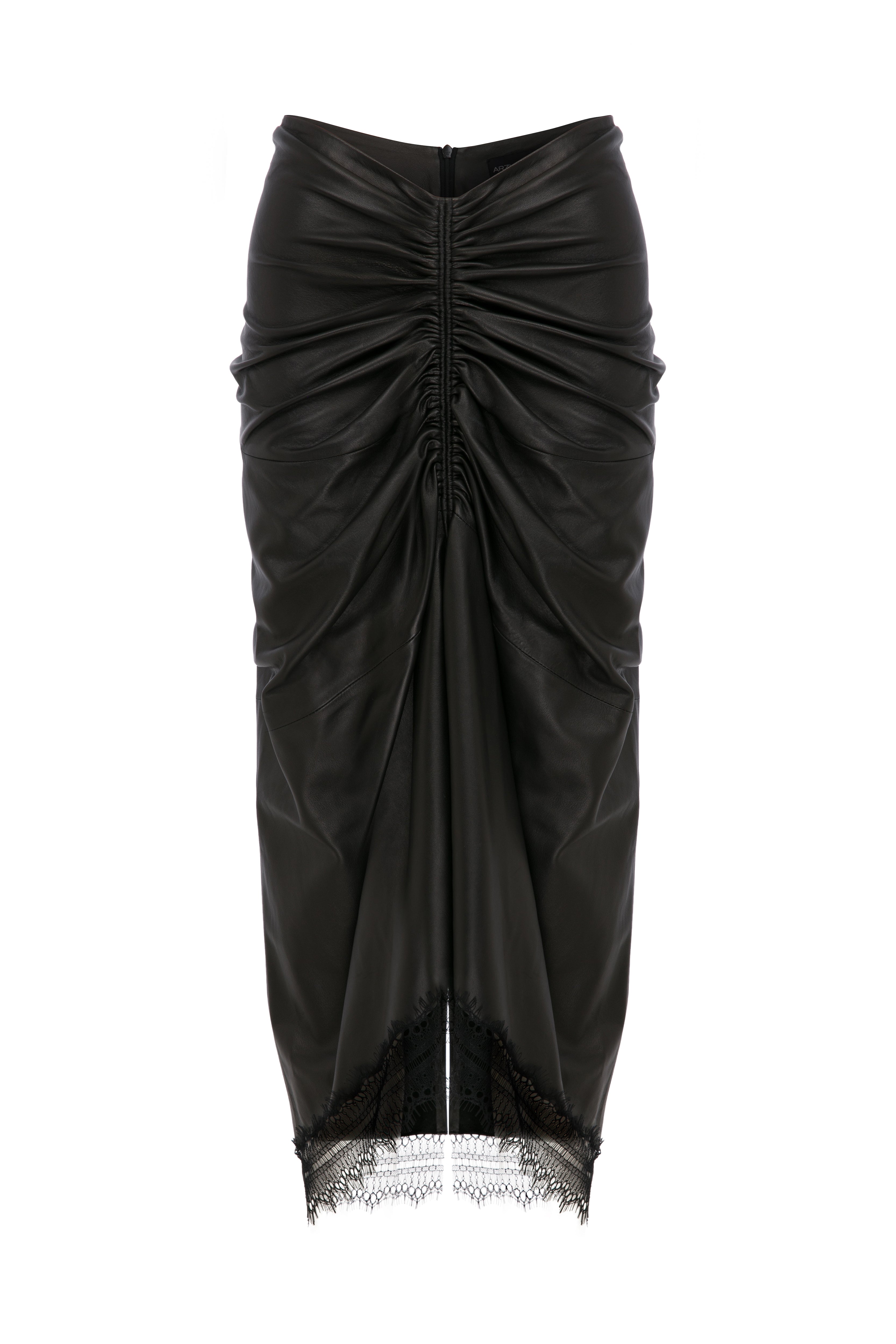 Büzgü Detaylı Deri Etek