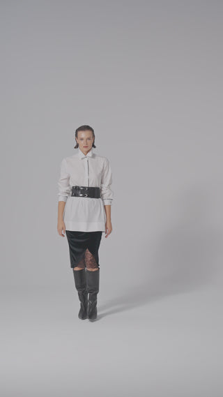 Zamansız siyahın sofistike yorumu. Yumuşak dokulu kadife kumaşı ve drapeli formu ile feminen bir siluet yaratır. Gündüzden geceye uzanan şık bir görünüm sunar.