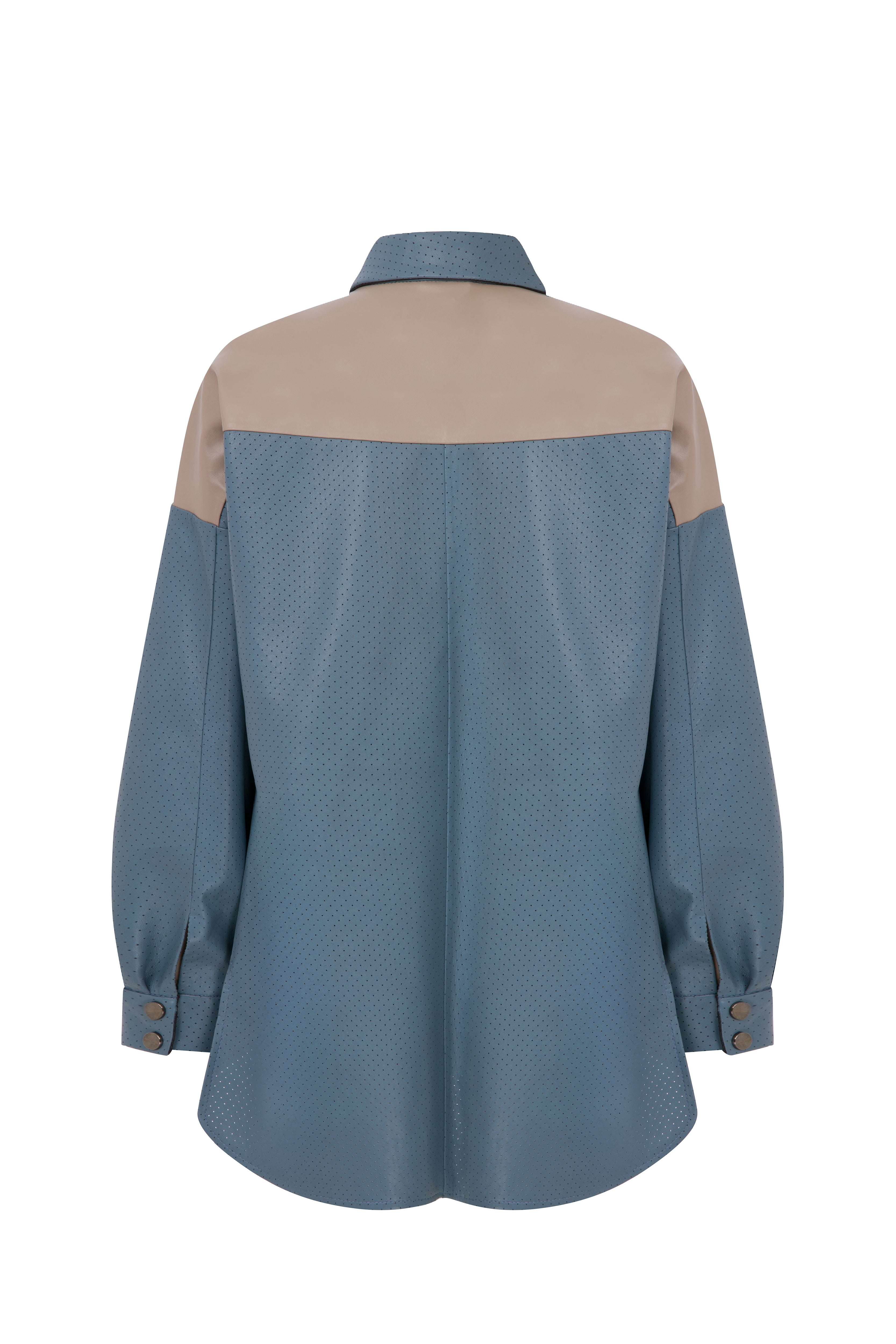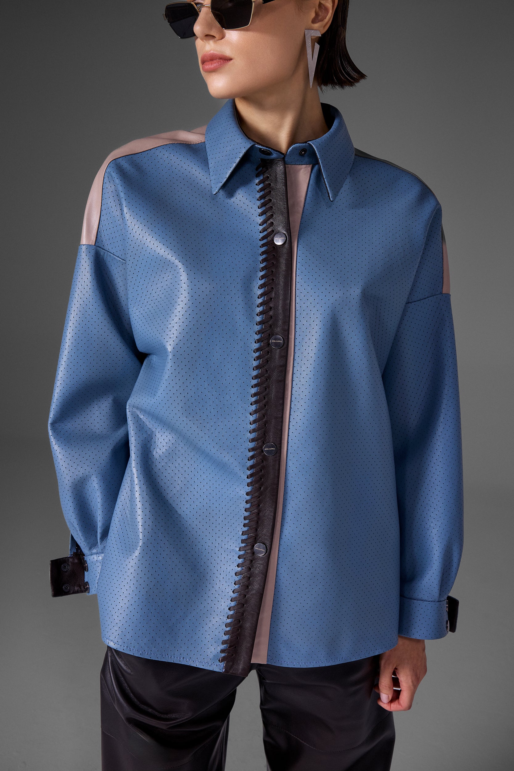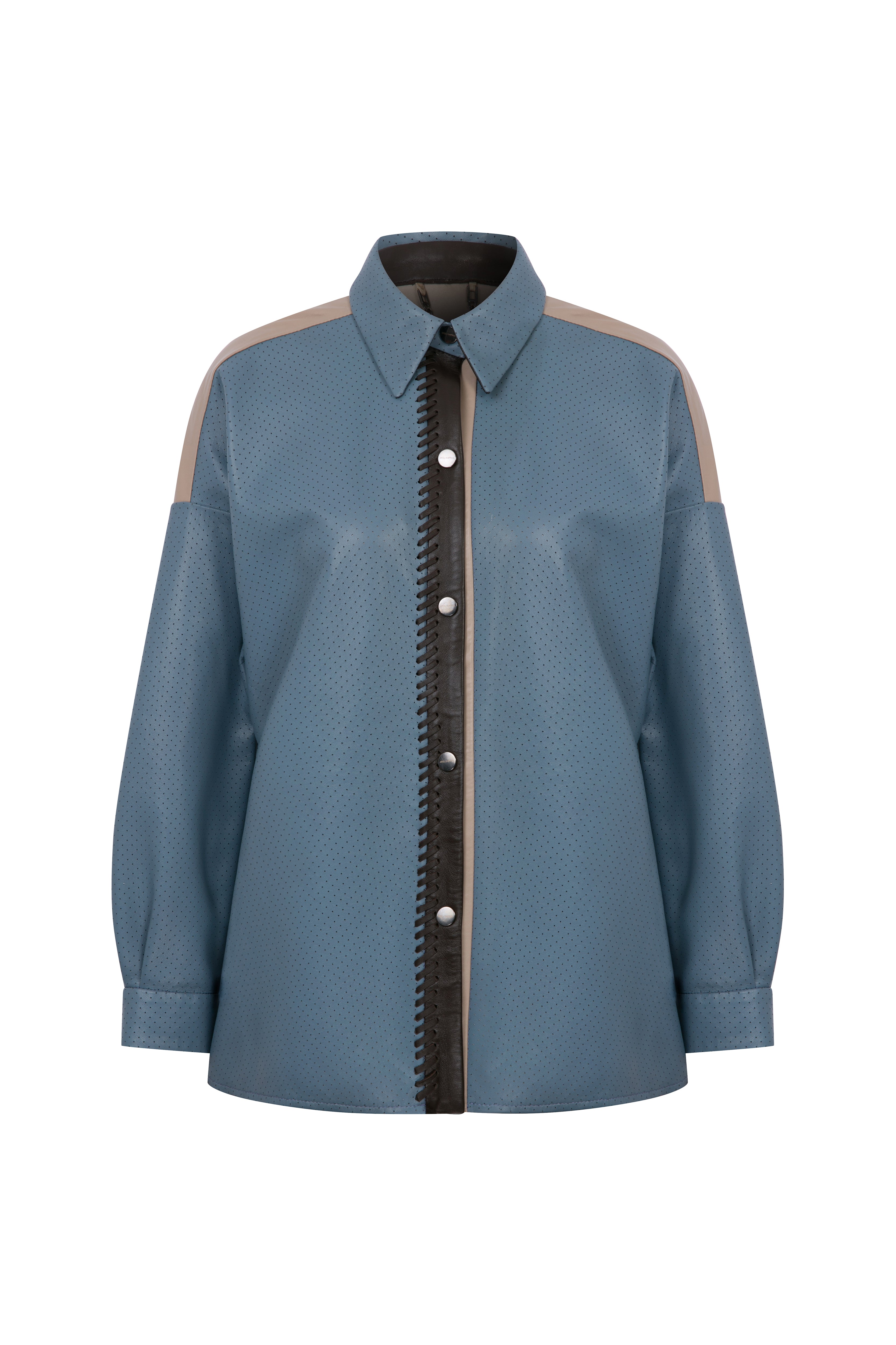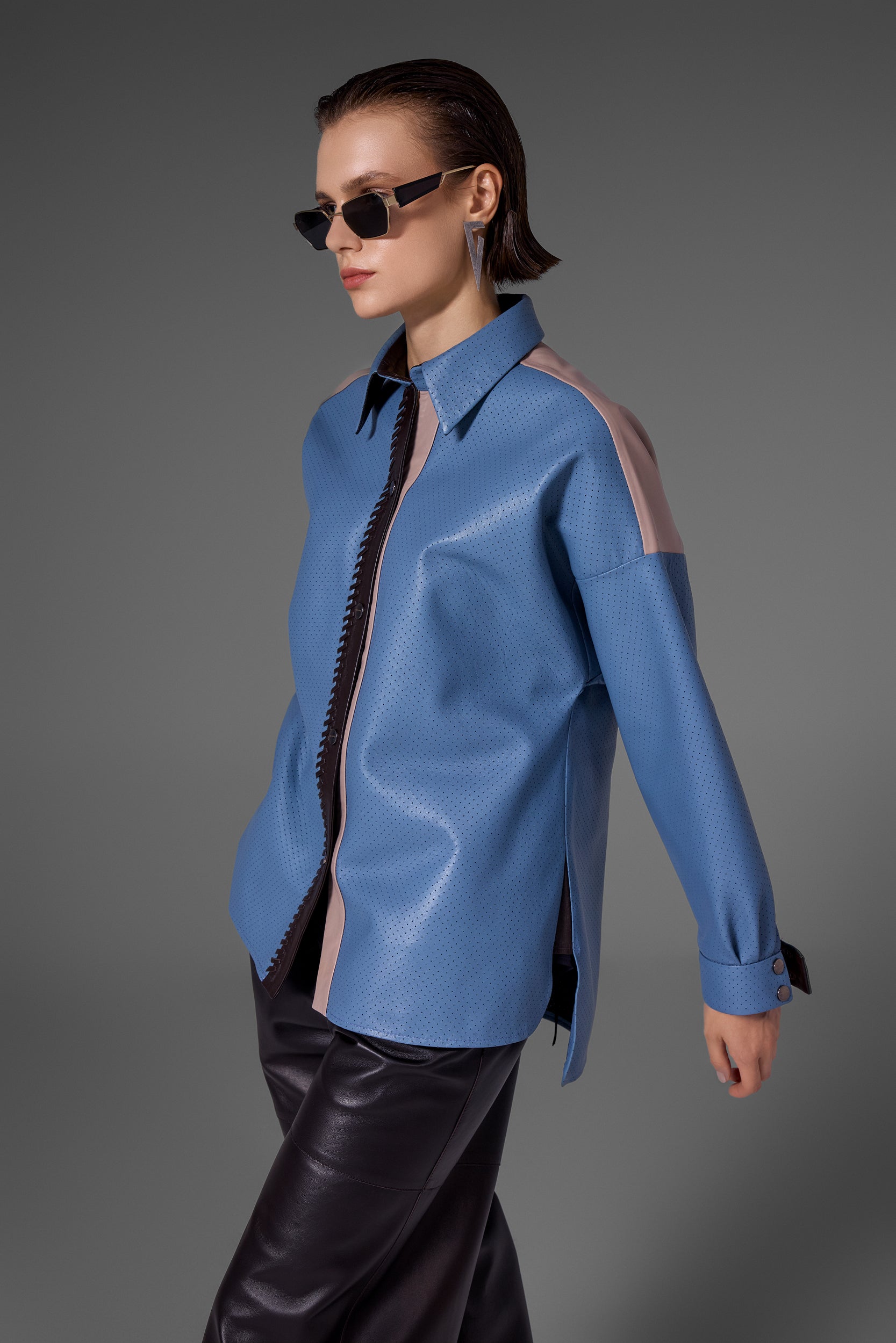 Modern çizgilerle yorumlanan zamansız bir deri parça. Perfore delikli deri dokusu ,can kontrast renk bloklarıyla güçlü bir görünüm sunar. Ön kısmındaki örgü formunda dikiş detayı, kontrast renkleri ile tasarıma sanatsal bir karakter kazandırır. Rahat kesimiyle gündüzden geceye modern şıklığı tamamlar.