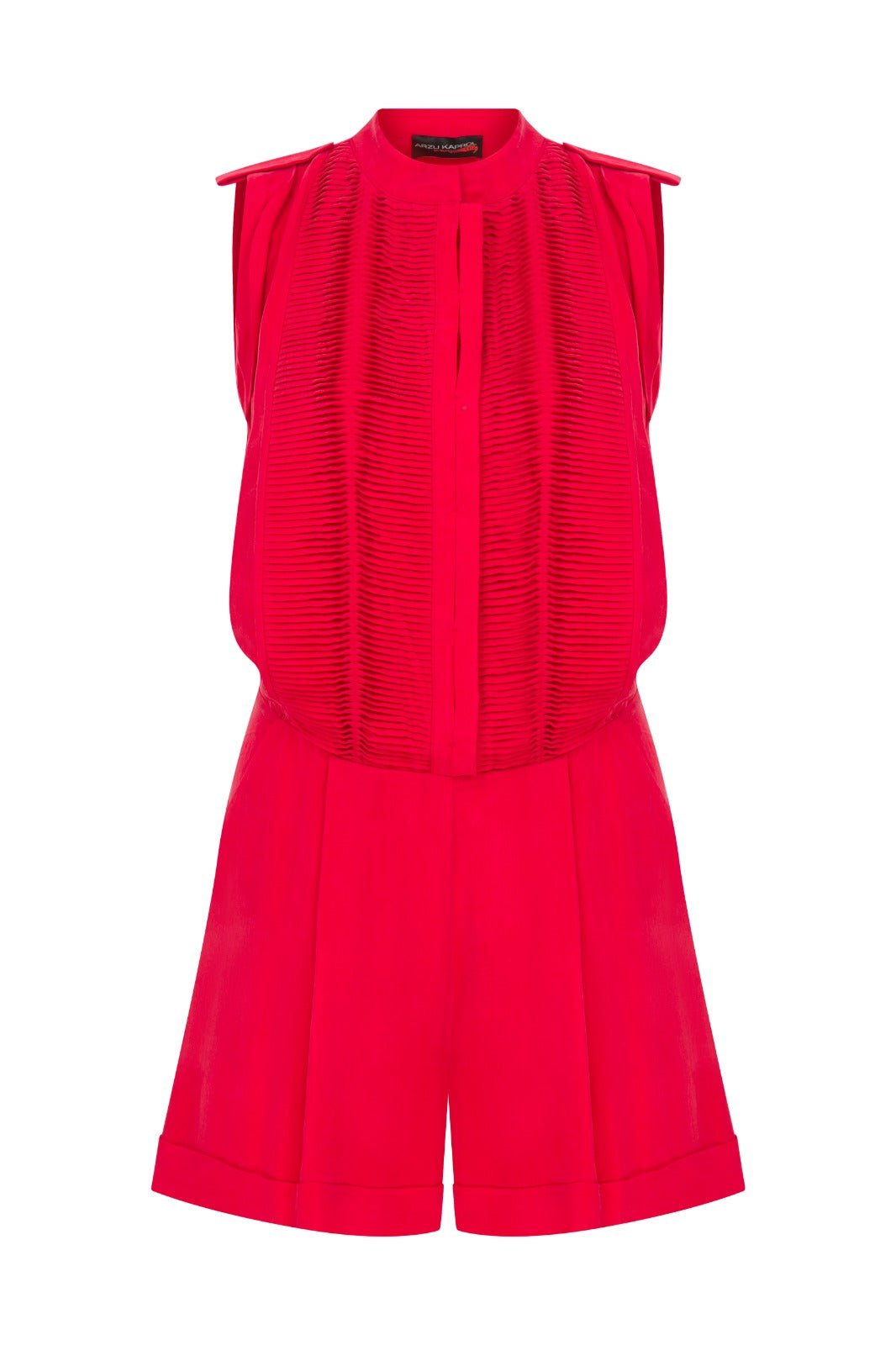 This comfortable and relaxed-fit jumpsuit with pleat details is made from 100% vegan certified cupro fabric and designed by Arzu Kaprol. It features self-fabric epaulets on the sleeves and functional pockets on the sides. Buttons are located under the placket, allowing for adjustment of the neckline. It offers a comfortable and stylish look.